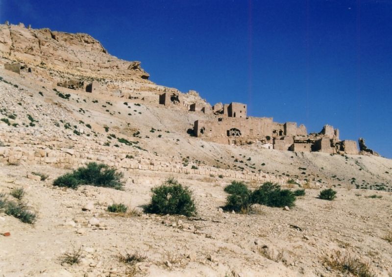 Perfekt getarnt haben die Nomaden hier Speicher für Getreide, aber auch Höhlen für Tiere und Wohnhöhlen teils in den Fels gehauen, teils aus Steinen gemauert. In Douirat hat uns der Local Guide für unsere Wanderung schon erwartet. Wir klettern durch die Tafelberge und winzigen Oasen, und machen Pause unter den weit überhängenden Zweigen eines Baumes. Nach ungefähr drei Stunden erreichen wir Chenini, ein weiteres Ksar, wo Nabil mit dem Jeep wartet.
