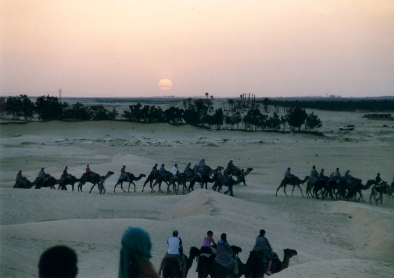 Auf einer Düne zehn Minuten entfernt, haben wir unseren ersten Wüstensonnenuntergang genossen, und beobachtet, wie hunderte oder mehr Kamele, Touristen von ihrer einstündigen Wüstentour zurück zum wartenden Reisebus geschaukelt haben. Manche dieser Reisebusse sind nur 100m zum nächsten Hotel gefahren. Wir freuen uns auf morgen!