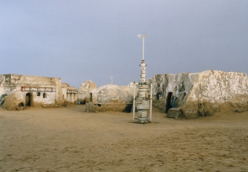 Plötzlich stehen wir mitten in der Wüste vor einigen Gebäuden und es stellt sich heraus, daß diese die Kulissen des Films "Star Wars - Episode I" sind. Mit dem Sonnenuntergang kommen wir wieder im Hotel an. Zum Abendessen erwartet uns ein phantastisches Büffet, das wohl beste Hotelessen der Reise. Für Morgen kündigt uns Robin eine Änderung an. Die eigentlich geplante Wanderung durch eine Schlucht muß leider ausfallen, weil das Wasser zu hoch steht. Die Alternativwanderung oberhalb der Schlucht ginge auch nicht, denn wir müßten an einem See vorbei, der aufgrund des Regens nun auch zu voll ist.