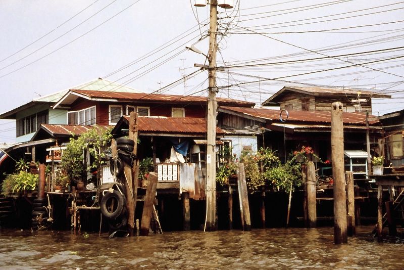 Heute Morgen um 10:00 Uhr geht es mit dem ersten Unternehmungvorschlag auch schon los: einer Fahr mit dem Longtailboot durch die Khlongs der Altstadt. An diesen Wasserstrassen stehen auf Stelzen Häuser und Hütten, teils malerisch, teils heruntergekommen und trotzdem bewohnt.
