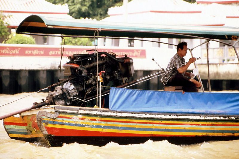 Nicht nur auf den Strassen ist es voll, auch auf dem Wasser. Die typischen Boote sind bestimmt zehn Meter lang, nur einen guten Meter breit und angetrieben werden sie von einer Schraube an einer langen Stange. Der hintere Teil der Boote wird komplett vom Motor ausgefüllt, anscheinend ein Prestigeobjekt.