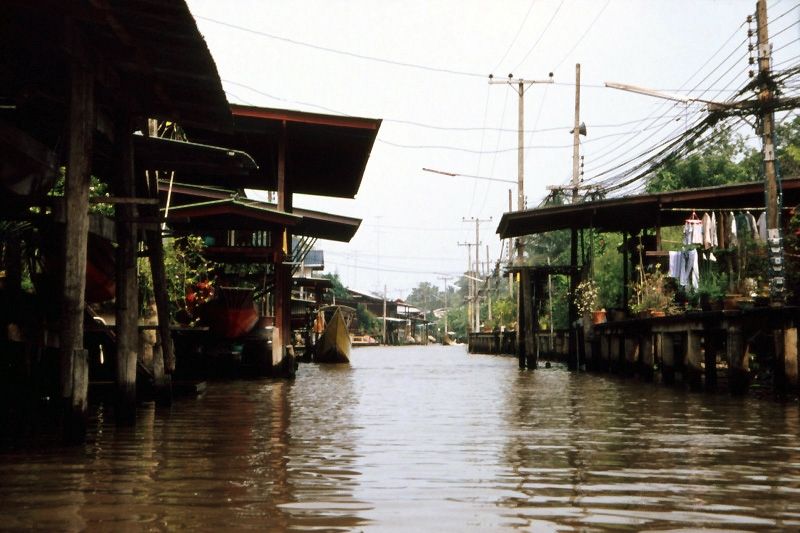 In der Nähe von Damnoen Saduak steigen wir in Longtailboote um, mit denen wir eine halbe Stunde mal wieder durch kleine Kanäle und Wasserstraßen brausen, bis zu den schwimmenden Märkten.