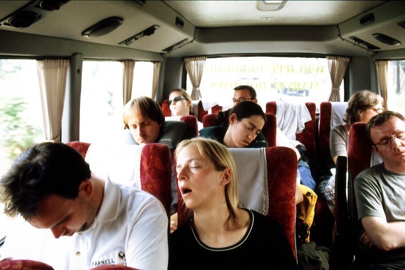 Auf der Fahrt bekommen wir ein Video gezeigt, welches uns etwas über die Geschichte der "Todeseisenbahn" vermitteln soll. Wir hatten aber alle noch etwas mit der Zeitverschiebung zu kämpfen...