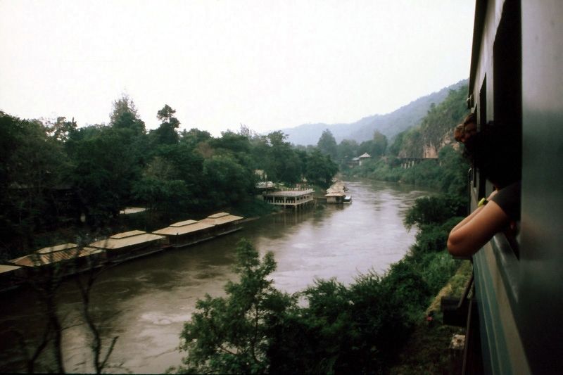 Kurz vor der Endstation kommen wir noch mal direkt an den Kwai mit einer grandiosen Aussicht. Alle hängen an den Fenstern während der Zug mit Schrittgeschwindigkeit über die alten Holzkonstruktionen schleicht.