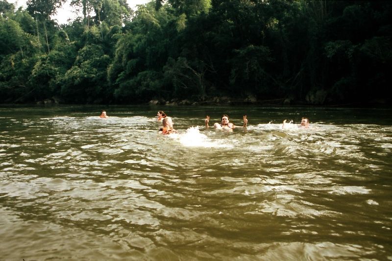 ...und zusammen mit Thomas, Ludwig, Heiko und Kathrin paddelt er flussabwärts. Es muss Spaß machen, denn alle steigen lachend am Floßhotel wieder aus dem Wasser.