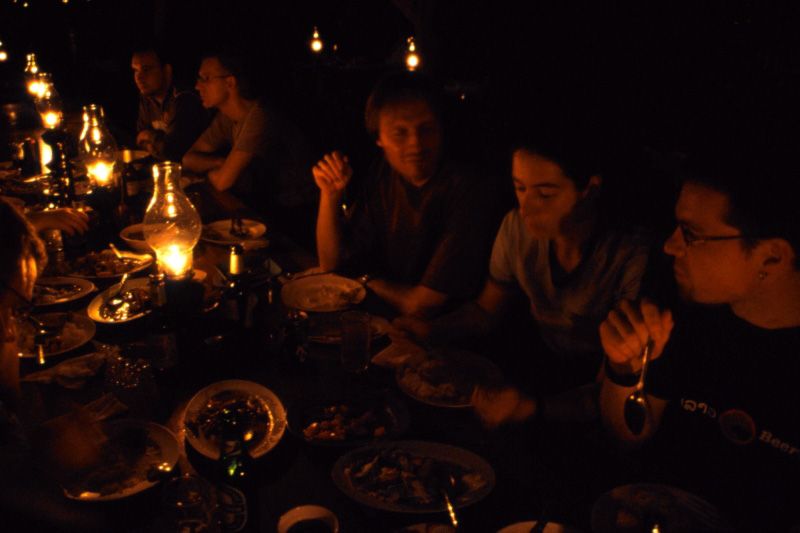 Aber auch im Märchen gibt es böse Tiere, hier sind es die Moskitos. Wir hängen vor dem gemeinsamen Abendessen deshalb noch schnell unser Moskitonetz auf. Mindestens fünf verschiedene Gerichte stehen wenig später für jeden bereit, lecker thailändisches Essen und davon so viel man will. Nach ein paar Bierchen kriechen wir müde und erschöpft unter unser Moskitonetz und schlafen wunderbar, endlich ohne Klimaanlage!