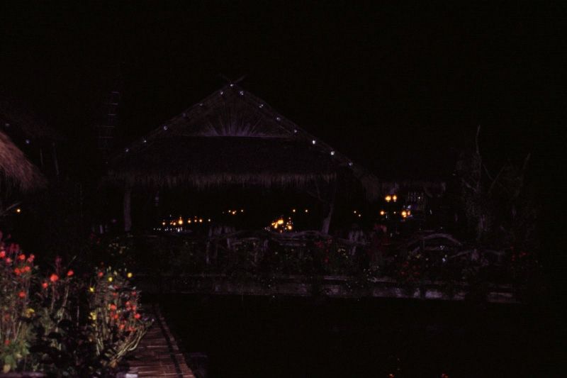 Im Dunkeln hinter einer Flussbiegung taucht dann unser Hotel auf, ausschließlich mit Fackeln und Öllampen beleuchtet. Kein Strom, kein warmes Wasser und vor jeder Zimmertür wartet schon eine kleine Laterne, um uns zu leuchten. Es ist wunderschön!