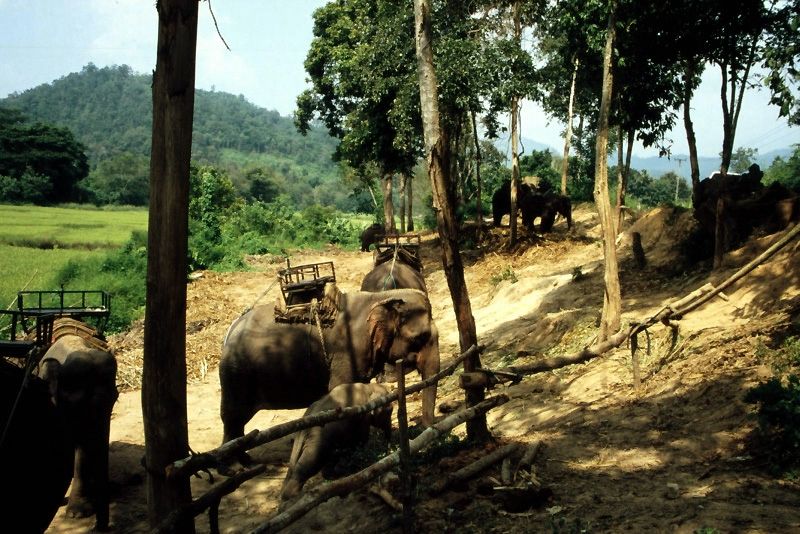 Gleich nach dem Frühstück im Hotel geht´s los. Um 9:00 Uhr treffen wir uns in der Hotellobby, schließen unser restliches Gepäck weg und steigen auf die Pickups, die uns in die Berge bringen. Zuerst sollen wir Elefanten reiten. Ist ja ganz lustig, aber eine halbe Stunde durch abgeholzten Wald und alle 5 Minuten neue Bananen kaufen müssen, weil die Elefanten es so gewohnt sind und sonst nicht weitergehen, ist irgendwie Verarschung!