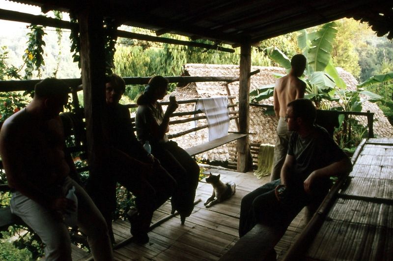 Eddie kocht uns richtig leckere Sachen, und wir essen mit einem Bärenhunger. Es gibt gebratenes Gemüse, grünes Curry mit Schwein und Reis. Auf der Veranda unserer Hütte steht eine große Kühlbox, in der im Eis genügend Flaschen und Dosen liegen, um ein komplettes Saufgelage zu machen. Im Kerzenschein sitzen wir vor der Hütte, essen, trinken und werden immer müder... Um 21:00 Uhr sind wohl fast alle im Schlafsack verschwunden.